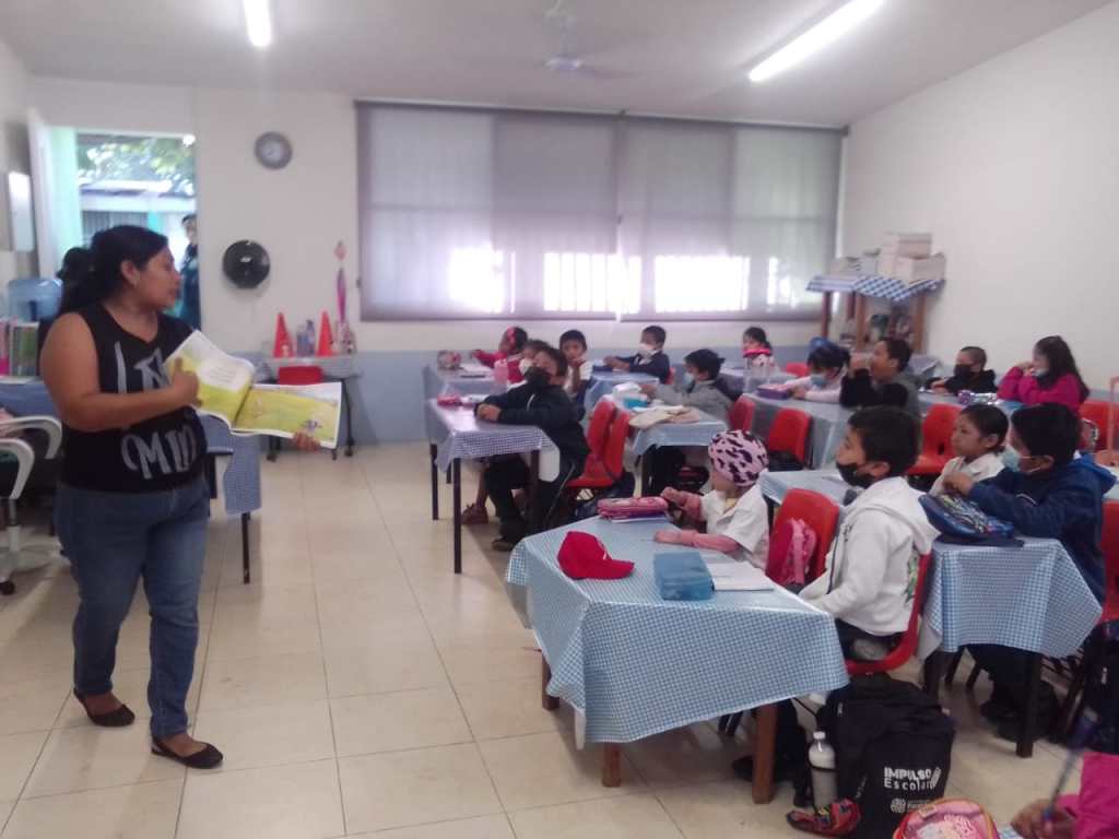 En esta entrada, te presentamos algunas fotografías de nuestro equipo de mediadoras en acción, quienes una vez por semana llenan las aulas de nuestras comunidades escolares con cuentos, imágenes y canciones, rompiendo la rutina y trayendo alegría a los niños y niñas.