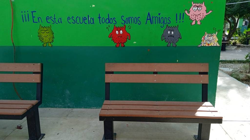 Las bancas se pintarán con frases como “Convivencia, inclusión, respeto, amistad, comprensión, tolerancia, empatía, sueños, amor y lealtad”, acompañado de un mural con la leyenda: