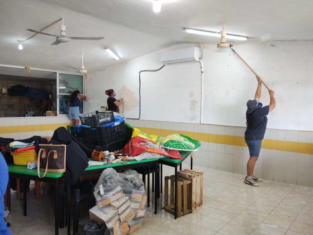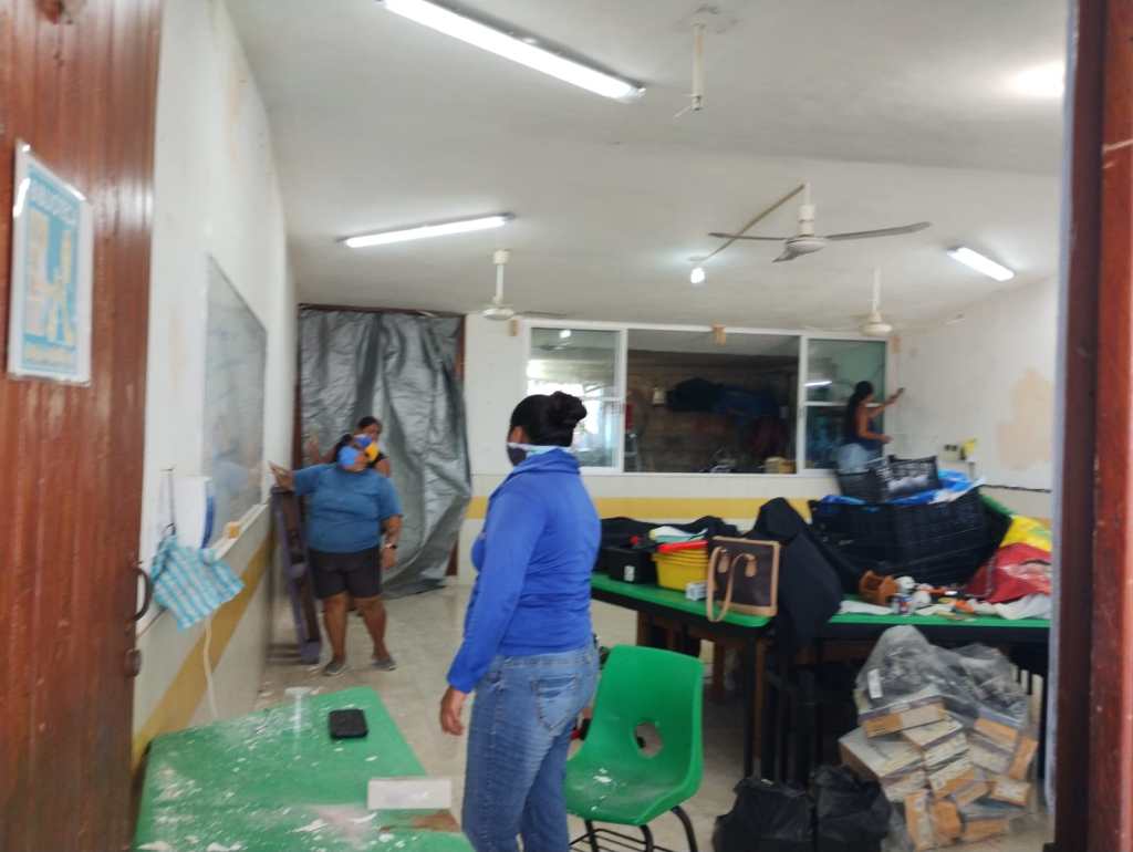 Más, menos, una decena de madres de familia voluntarias rehabilitando una biblioteca escolar, ellas han limpiado, sacudido, cargado, raspado metal oxidado, raspado paredes, han resanado paredes, planean impermeabilizar, arreglar lámparas, mandar a componer ventiladores, darle mantenimiento al aire acondicionado, pintar, decorar. Se han lastimado, astillado, empanizado en raspadura, además de soportar el calor. Han boteado, han pedido donación de productos de limpieza y para pintar, andan armando una tómbola y varias ventas, todo para continuar.