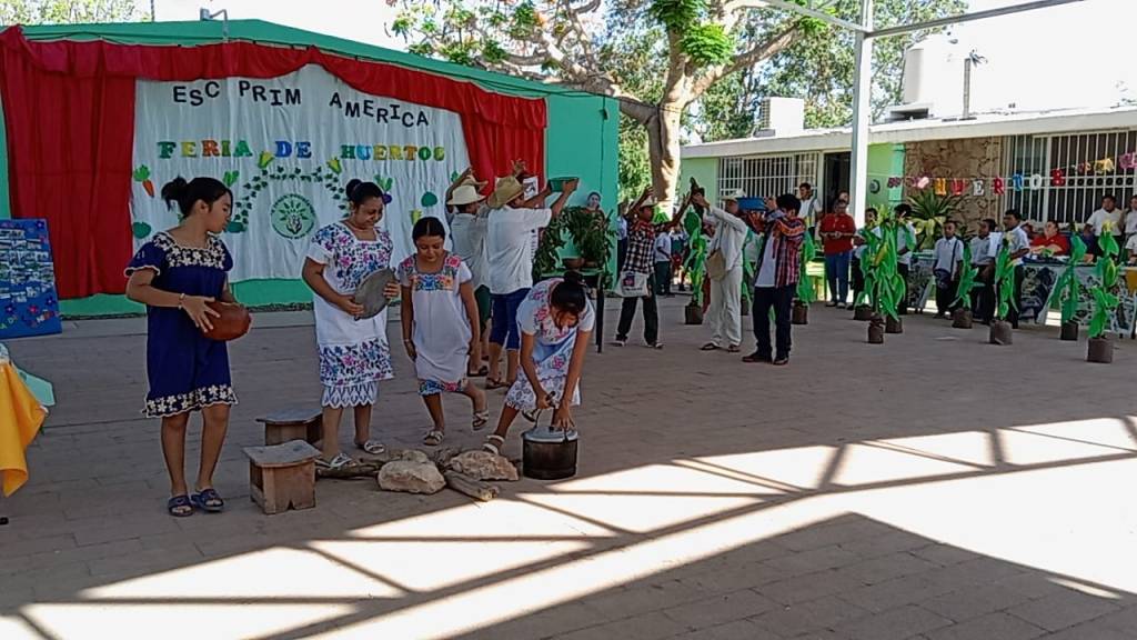 La feria fue una muestra auténtica de la cultura maya, donde se mezcló el huerto y el arte para una demostración inigualable. El evento dio inicio con un número de jarana por parte de doña Rosy y Alejandro de EDUCA, fue un inicio lleno de energía y mucha alegría que dio paso a la representación de La Primicia, ceremonia dedicada al dios Chaac para pedir lluvia para la cosecha, luego los niños y niñas de primero A bailaron, su coreografía estuvo inspirada en el proceso que se realiza en el huerto. Posteriormente alumnos de tercer año platicaron sobre su colaboración en el huerto escolar.