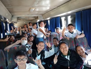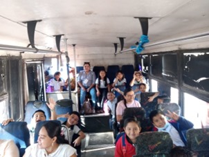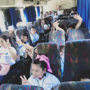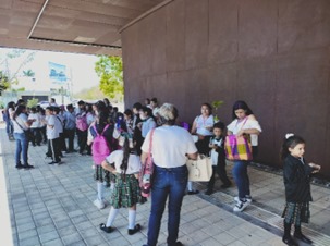 Al filo del mediodía, el grupo de estudiantes, profesores, madres y padres de familia y mediadores salieron del Área de Talleres para dirigirse al acceso principal en donde serían llevados al lugar en que abordarían nuevamente los autobuses con rumbo a la escuela. Finalmente, y poco antes de las 13:00 h, los autobuses arribaron a la escuela en donde algunas madres y padres de familia ya esperaban a sus hijas e hijos.