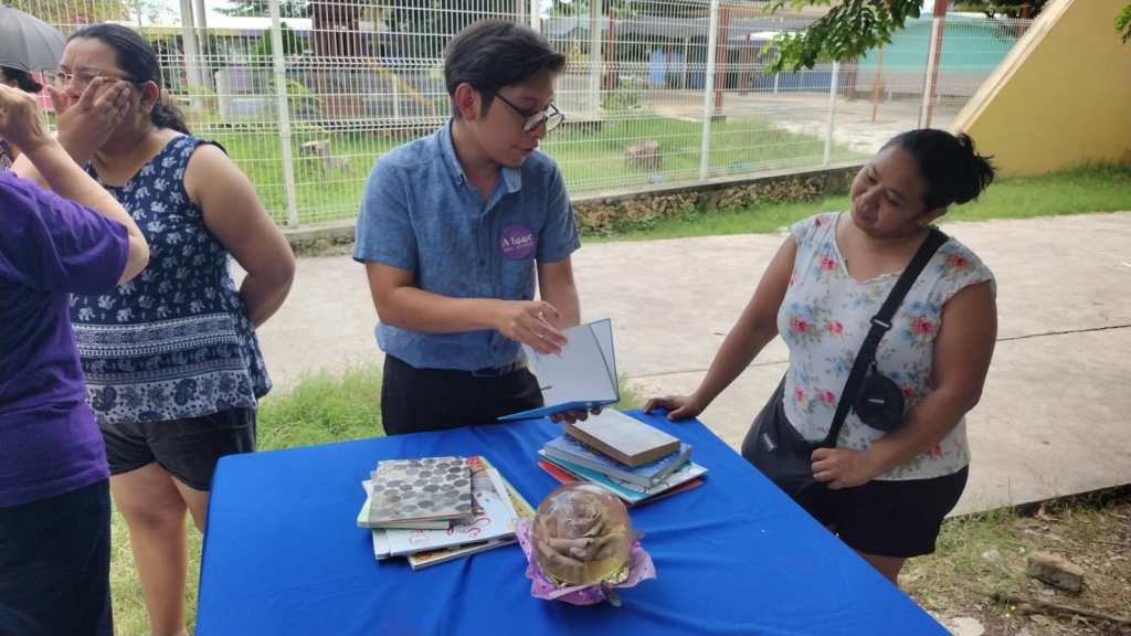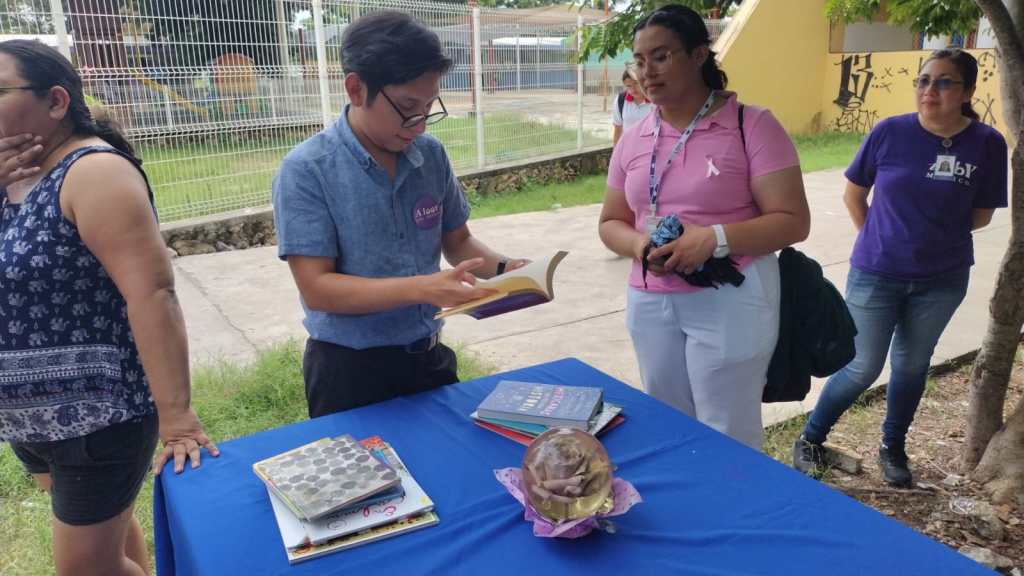 La tarde del 2 de octubre el «adivino» Víctor del equipo de IBBY México estuvo regalando lecturas de tarot literario a los transeúntes que llevaron a sus hijos a la escuela.