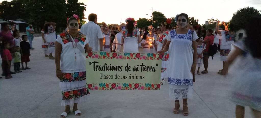 Los festejos de Hanal Pixán dieron inicio con el camino de las ánimas, fue un recorrido por las calles de la comunidad que logró integrar la participación del alumnado con los vecinos, quienes salieron de sus casas a mirar la caminata. Fue un momento muy emotivo, porque los alumnos fueron vestidos con ropa típica y maquillados como ánimas, en las manos llevaban velas que iluminaban el atardecer.